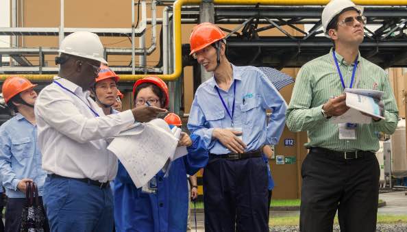 7月5日上午,OPCW視察組和國家代表、省市陪同人員在聽取核查前情況介紹后,共同前往公司生產(chǎn)區(qū)域進行了現(xiàn)場核查。視察組一行在察看企業(yè)總平面布置之后,分別對生產(chǎn)裝置、工藝流程等作了詳細了解,核實了企業(yè)生產(chǎn)經(jīng)營中的相關(guān)記錄、原始臺賬、報表等,公司陪同人員客觀、專業(yè)的回答了核查組提出的各類問題。